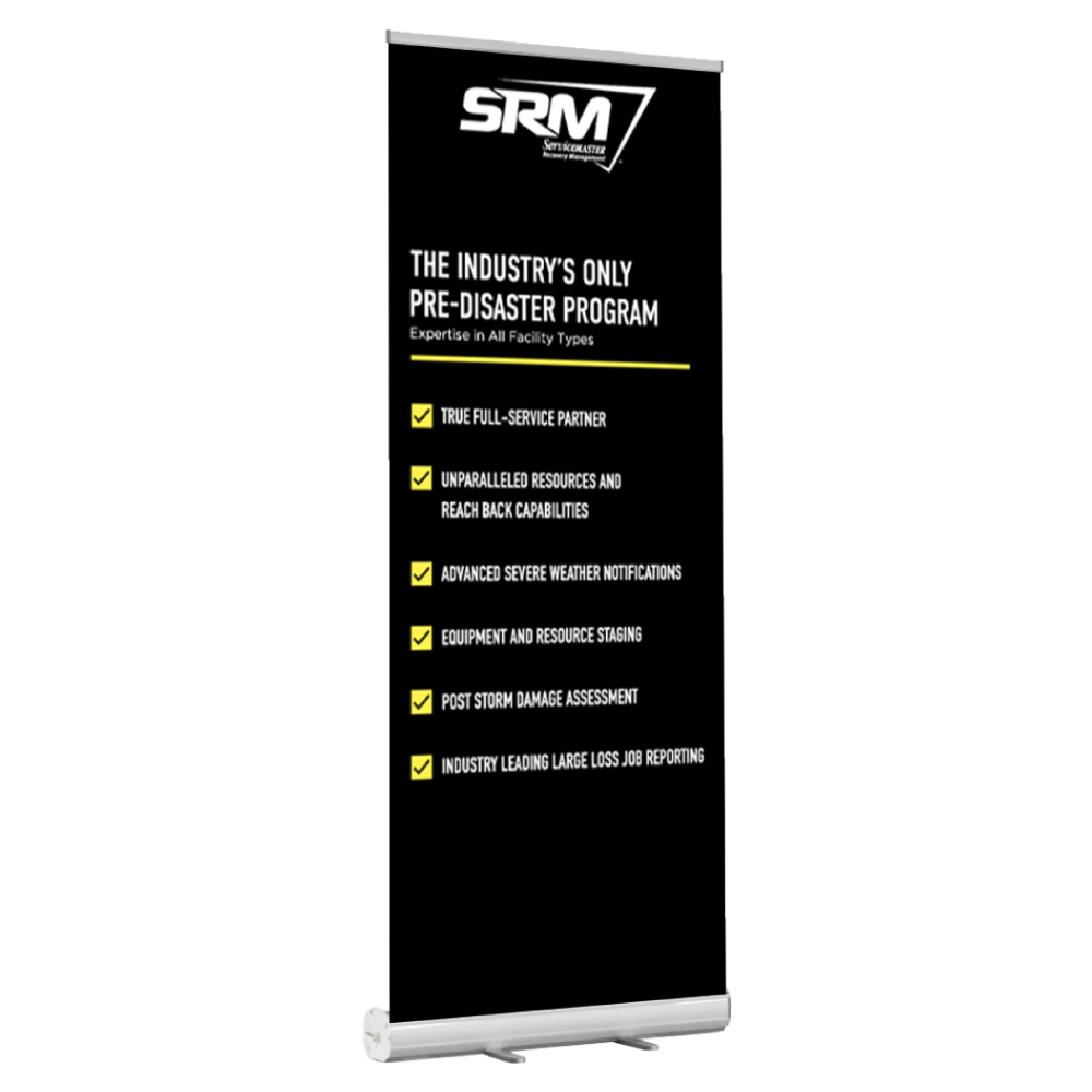 SRM Banner Stand - "The Industry's Only Pre-Disaster Program"